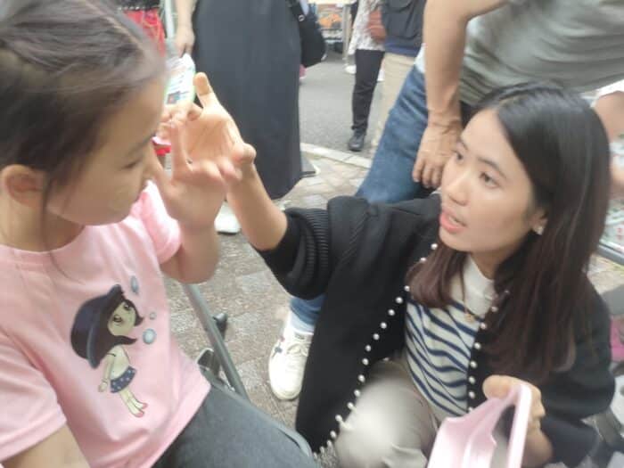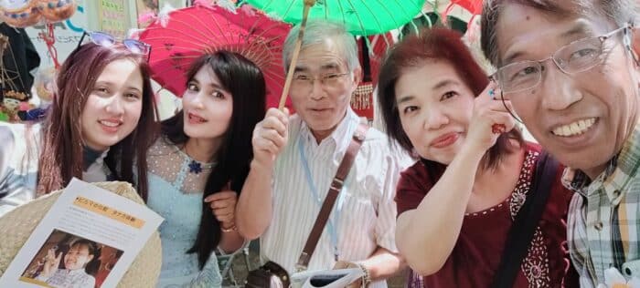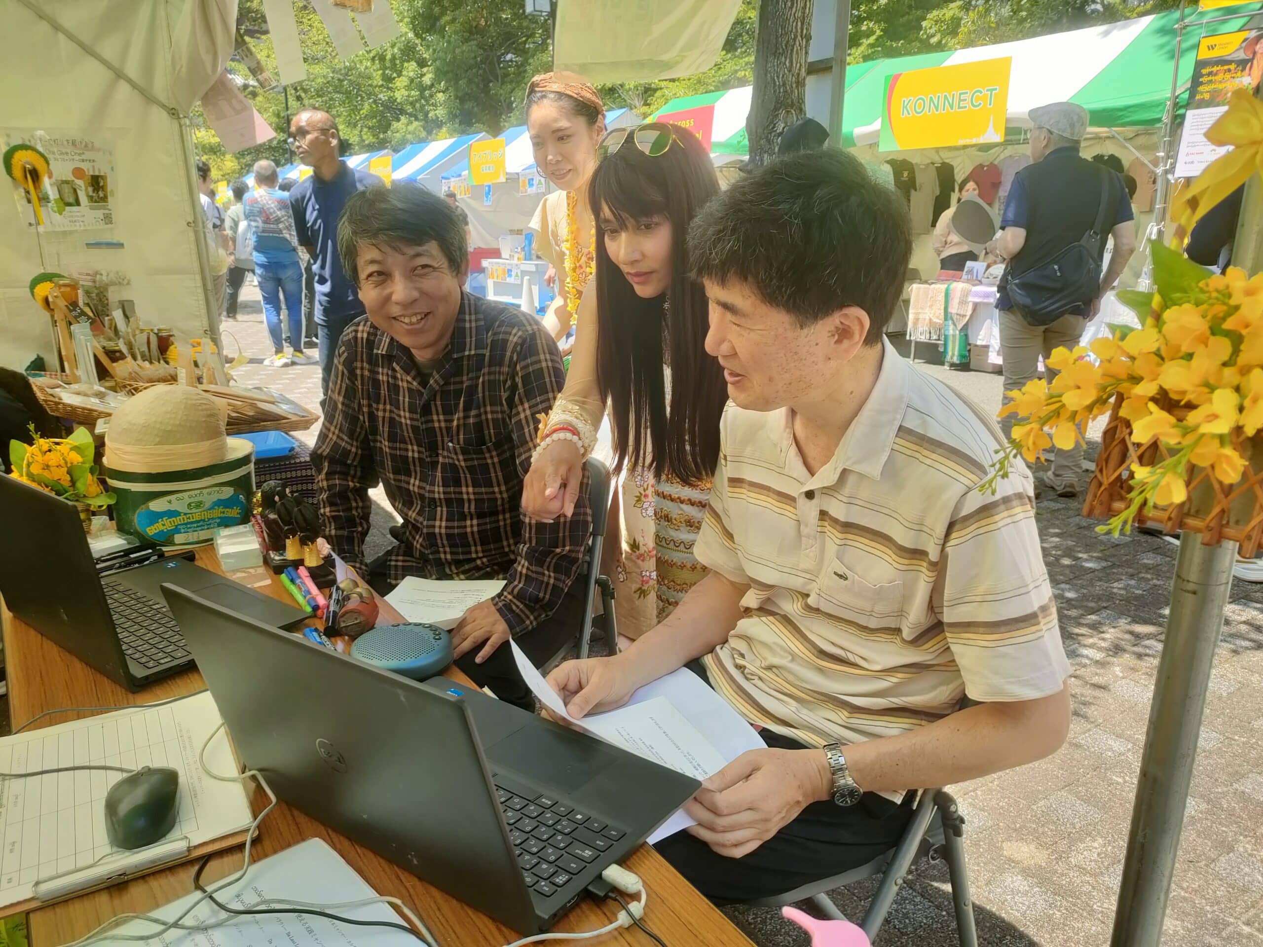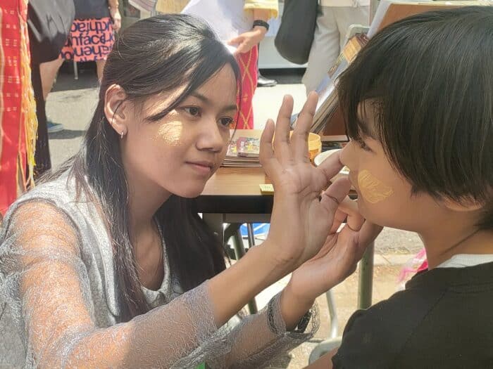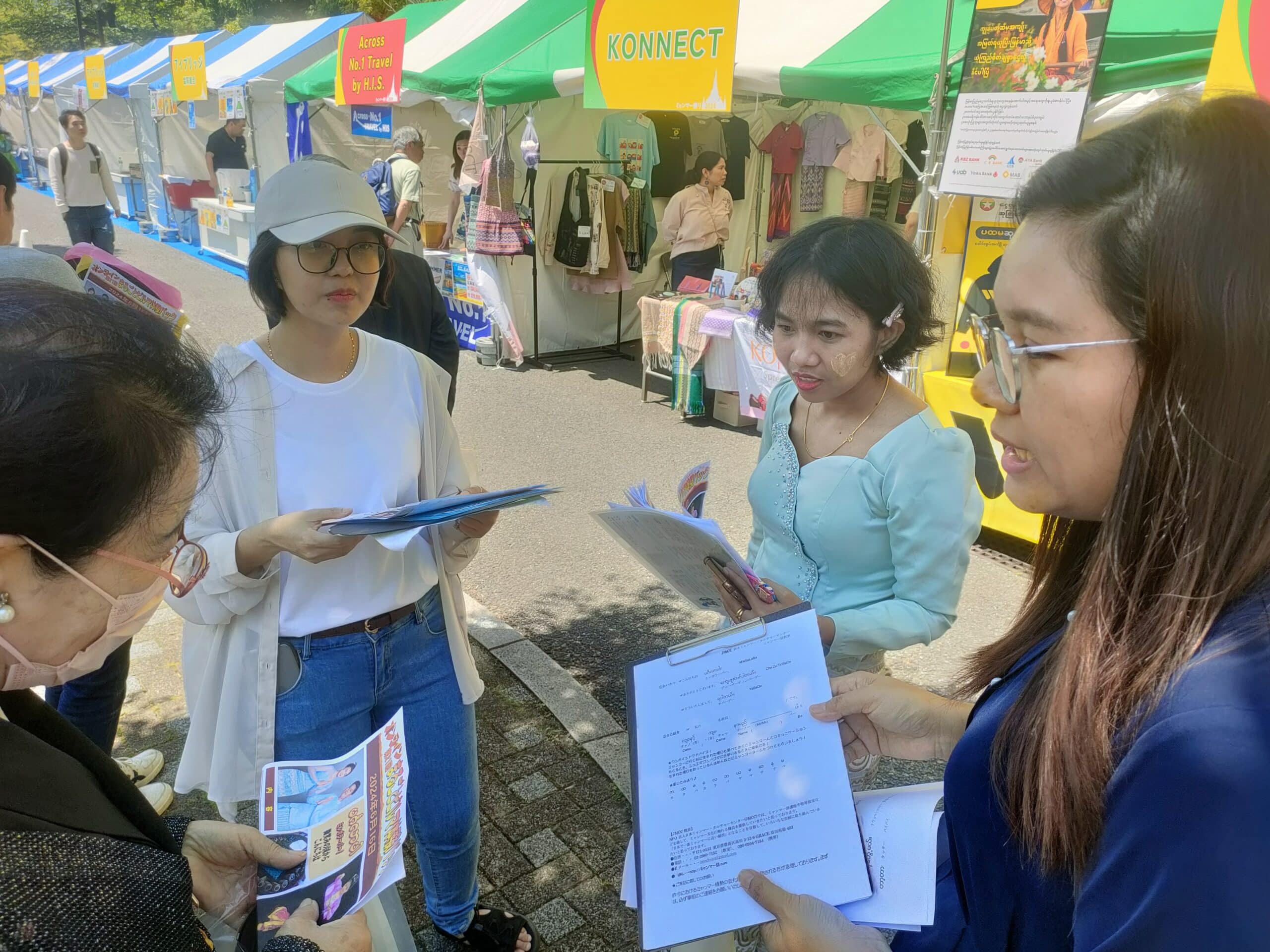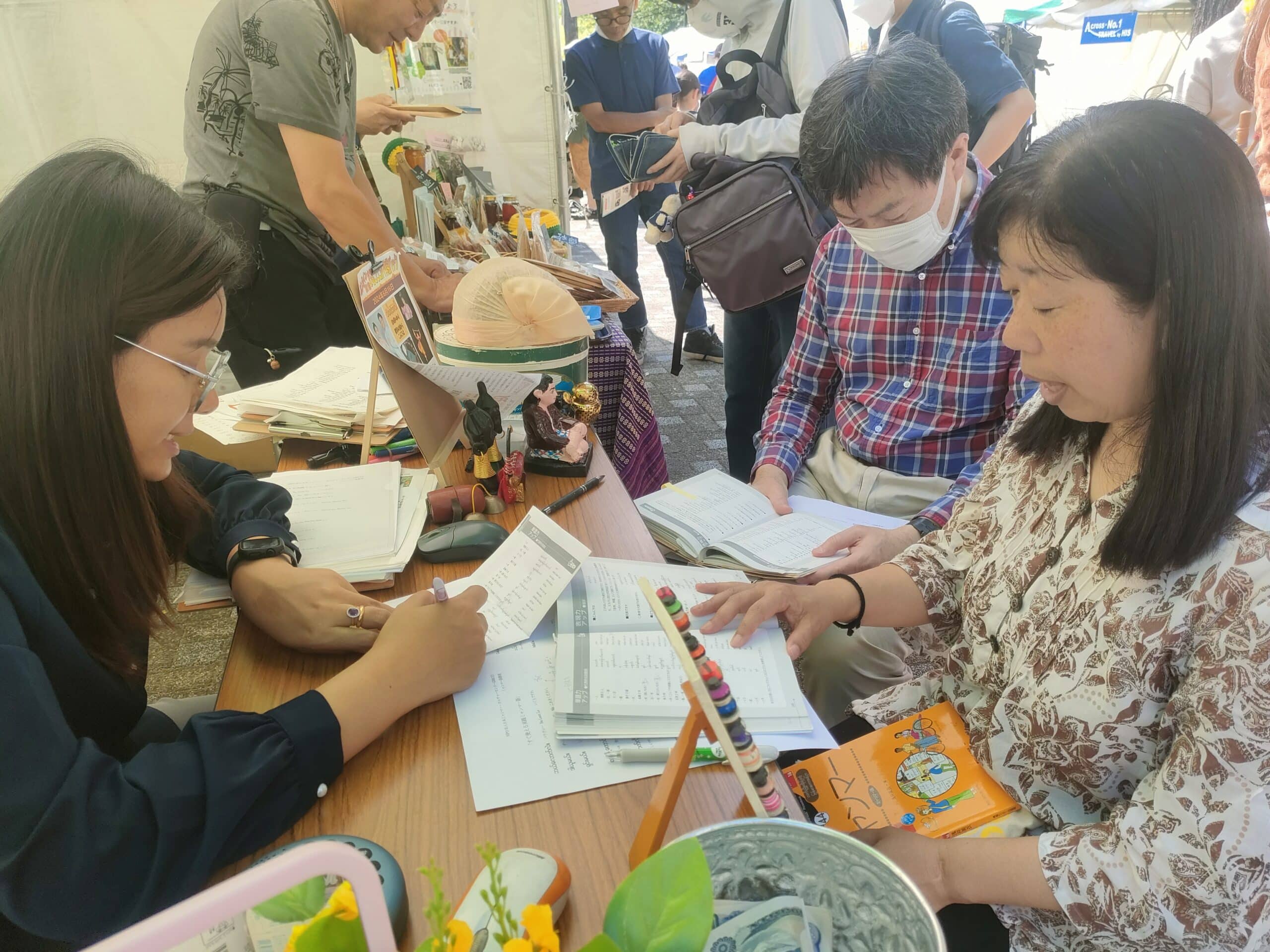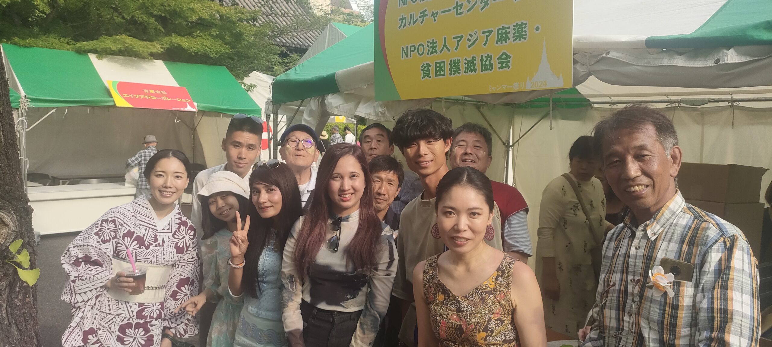 5月25日(日)~26日(月)ミャンマー祭りに参加 2024年5月25日(日)~26日(月)ミャンマー祭りに参加 例年通り、NPO法人アジア麻薬・貧困撲滅協会とブースを分け合って、ミャンマー祭りに参加。しました。ミャンマー人と日本人(ミャンマー語教室の生徒さん、日本語教室・子ども会の先生たち、JMCCと何らかの形で関わってくださった方々などなど)が協力して、ミャンマー語体験レッスン、ミャンマー名命名、伝統格闘技ラウェイ日本人チャンピオンのお話、タナカ体験、竪琴と写真撮影など、いろいろな企画を来場者に提供して楽しんでいただくことができました。 5月25日(日) 5月26日(月)